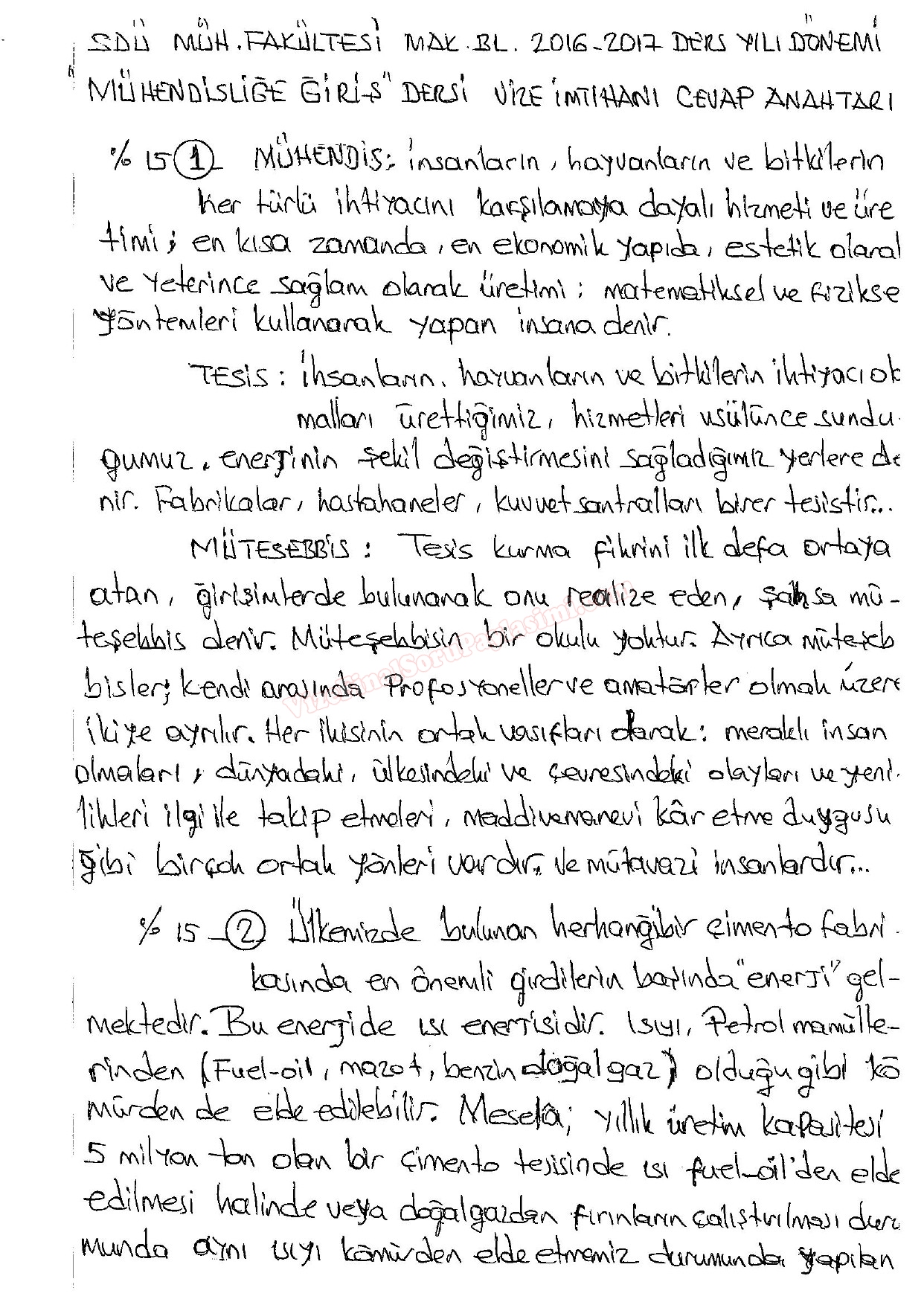 Makine Mühendisliğine Giriş MMG Vize Soruları ve Cevapları Süleyman Demirel Üniversitesi SDÜ 2017 2017 Mühendisliğe Giriş