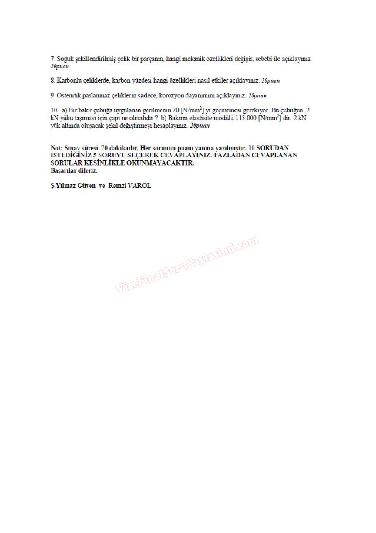 Malzeme Bilgisi yılici Final Soruları ve Cevapları Vize Soruları ve Cevapları Süleyman Demirel Üniversitesi SDÜ 2017