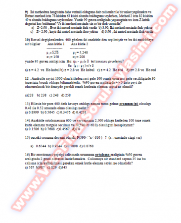 İstatistik 1 Vize Soruları-2005 4-11-2014, 13:27