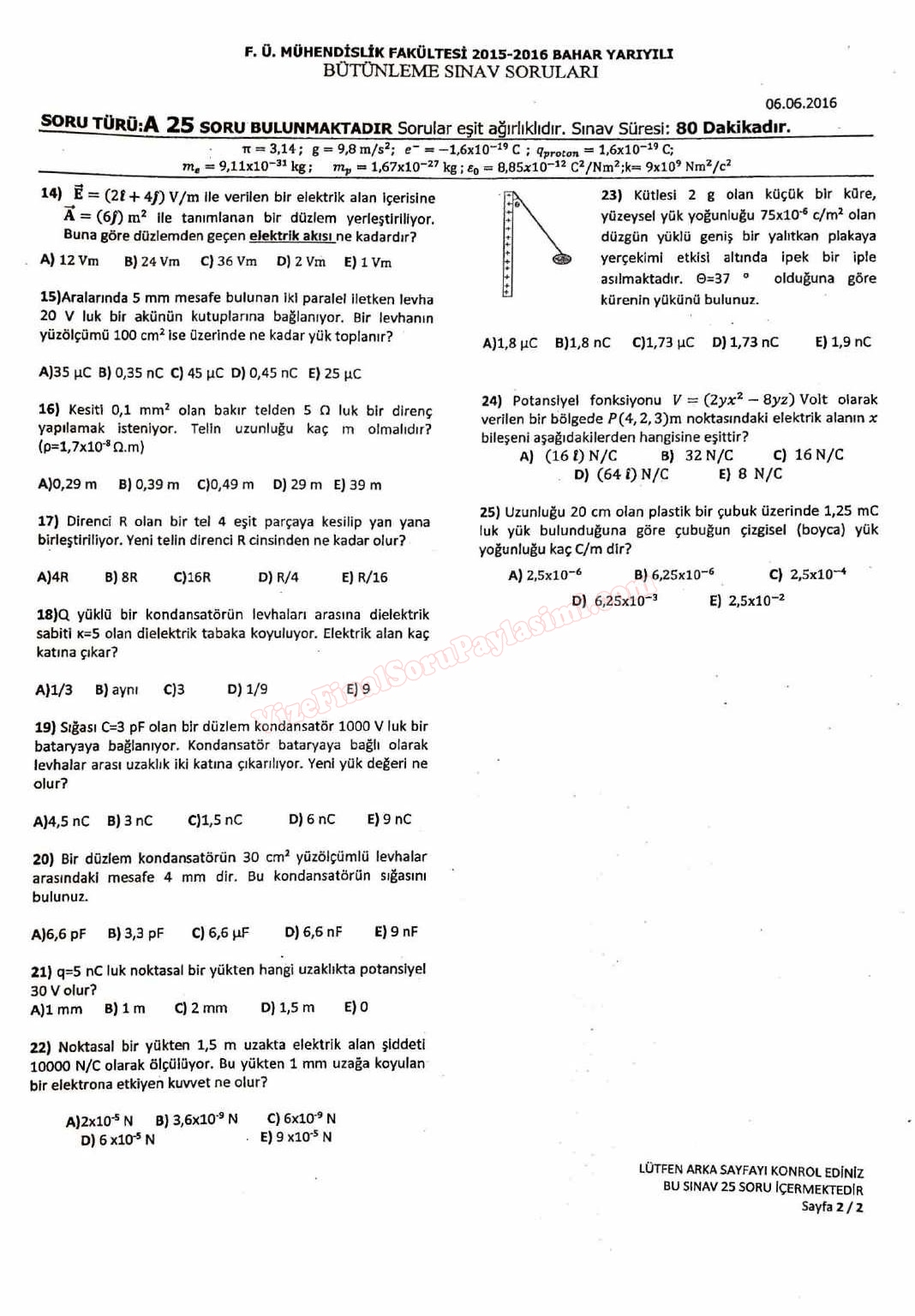 Fizik -2 Final Soruları - 2017 30-05-2017, 01:00