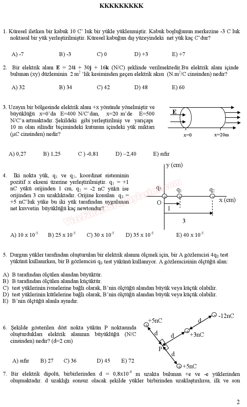 Vize ve Final Soruları / Düzce Üniversitesi / Fizik -2