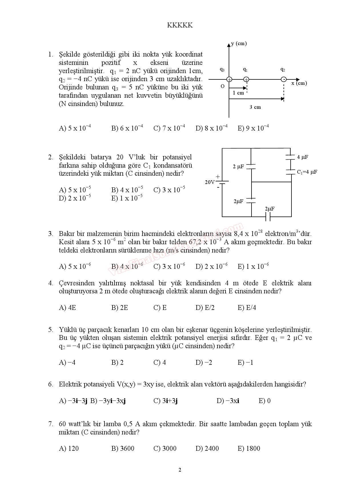 Vize ve Final Soruları / Düzce Üniversitesi / Fizik -2