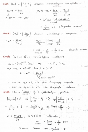 Diziler ve Seriler Matematik -2 Diziler Ders Notları Çalışma Soruları