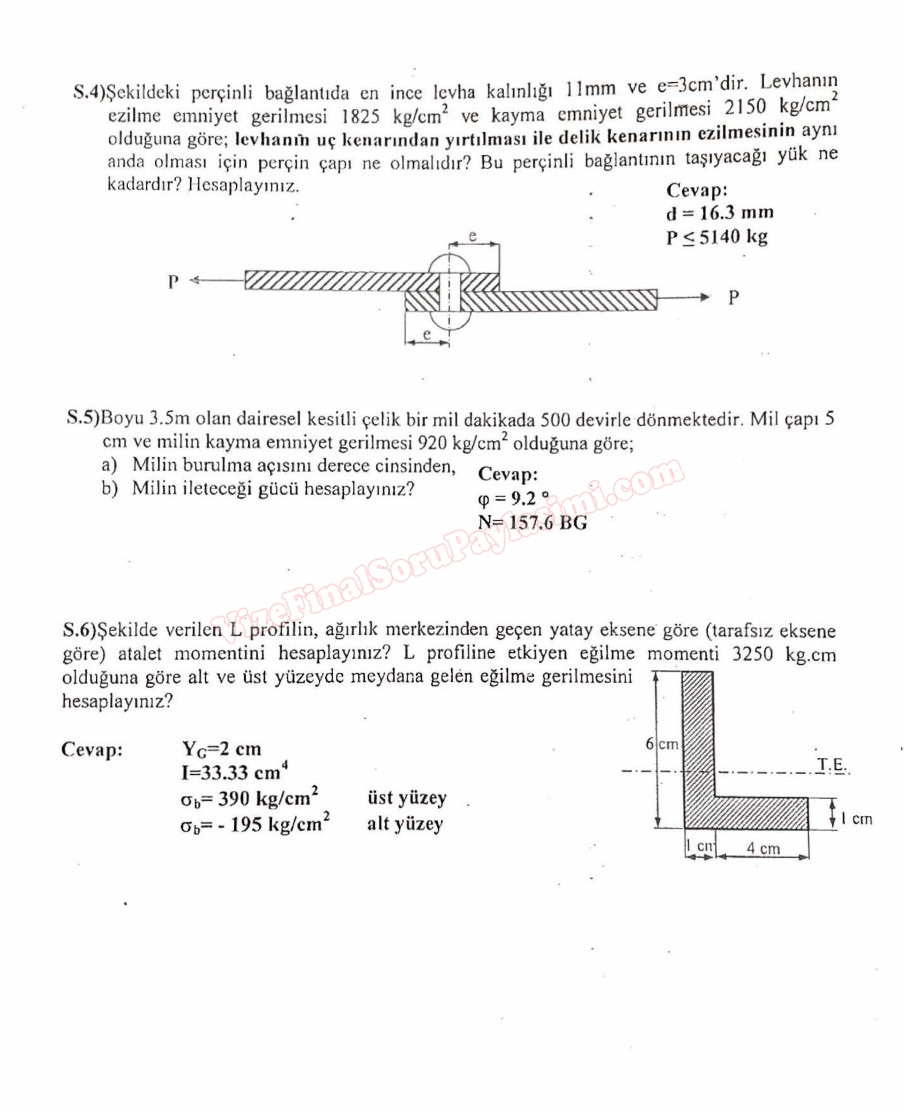 Cisimlerin Dayanımı 1 Final Soruları Ve Cevapları 2006 31-07-2015, 22:33