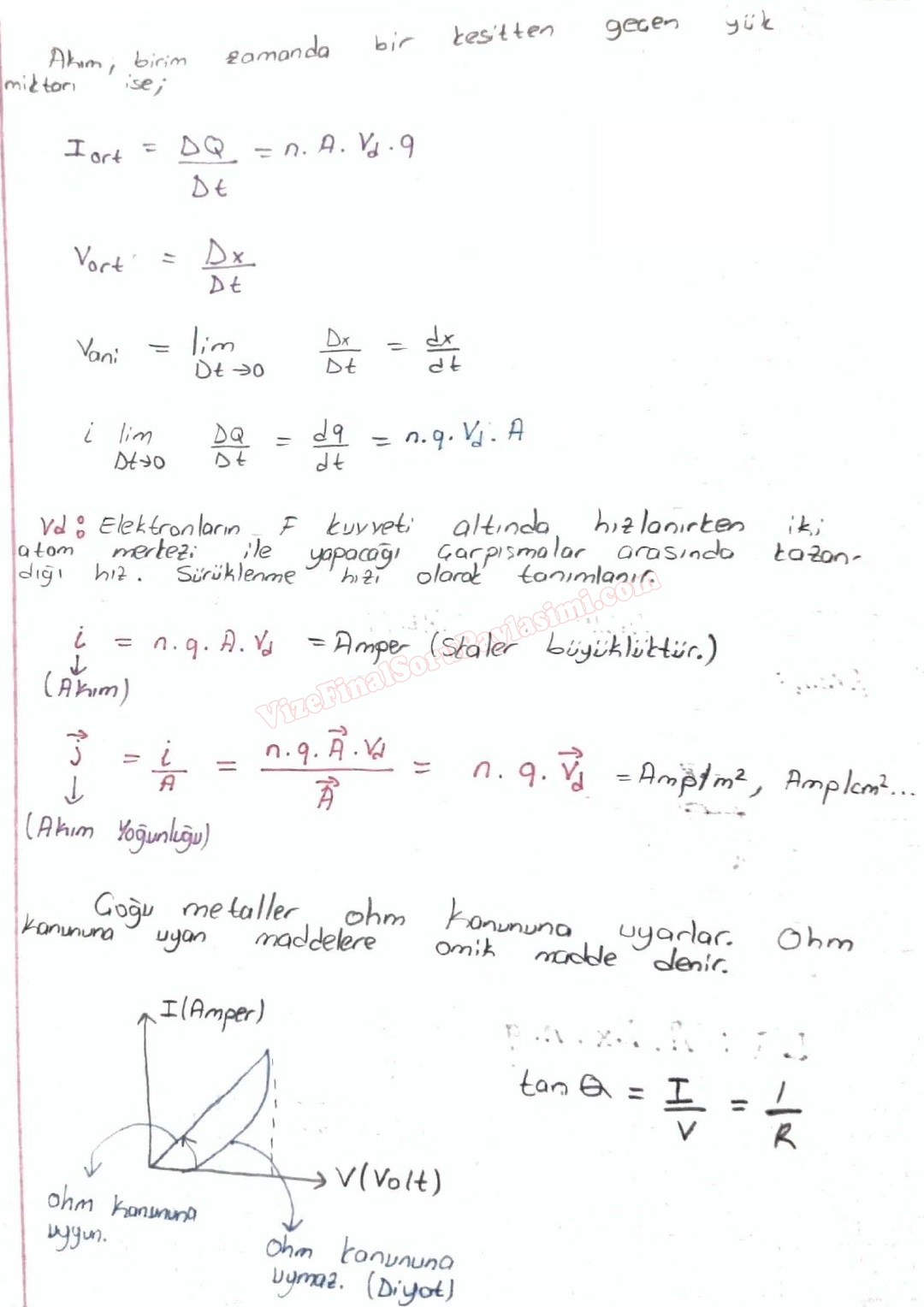 Fizik -2 Akım ve Direnç Ders Notları Ders Notları Örnek Sorular Çalışma Soruları Ohm Yasası