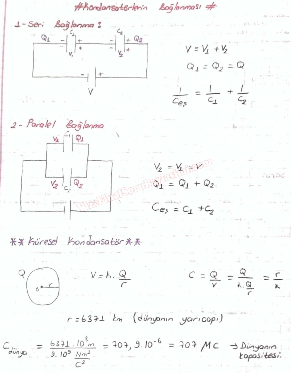 Fizik -2 Kondansatörler Ders Notları Çalışma Soruları Örnek Sorular
