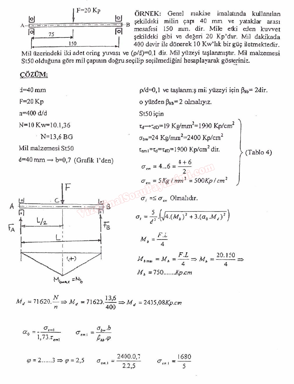 Makine Elemanları -2 Örnek Sorular Çalışma Soruları Ders Notları