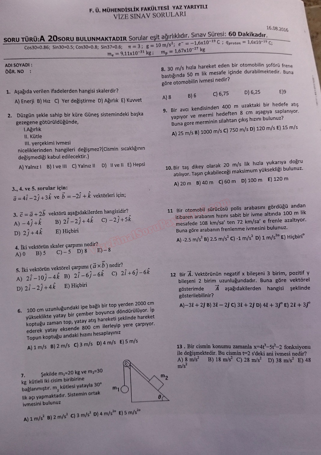 Fizik -1 Final Soruları - 2016 26-01-2016, 16:55