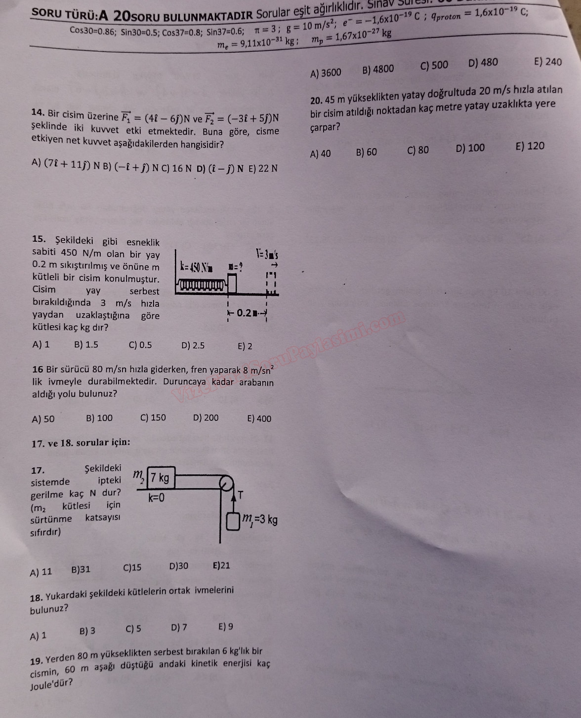 Fizik -1 Final Soruları - Teknoloji Fakültesi 30-12-2017, 22:26