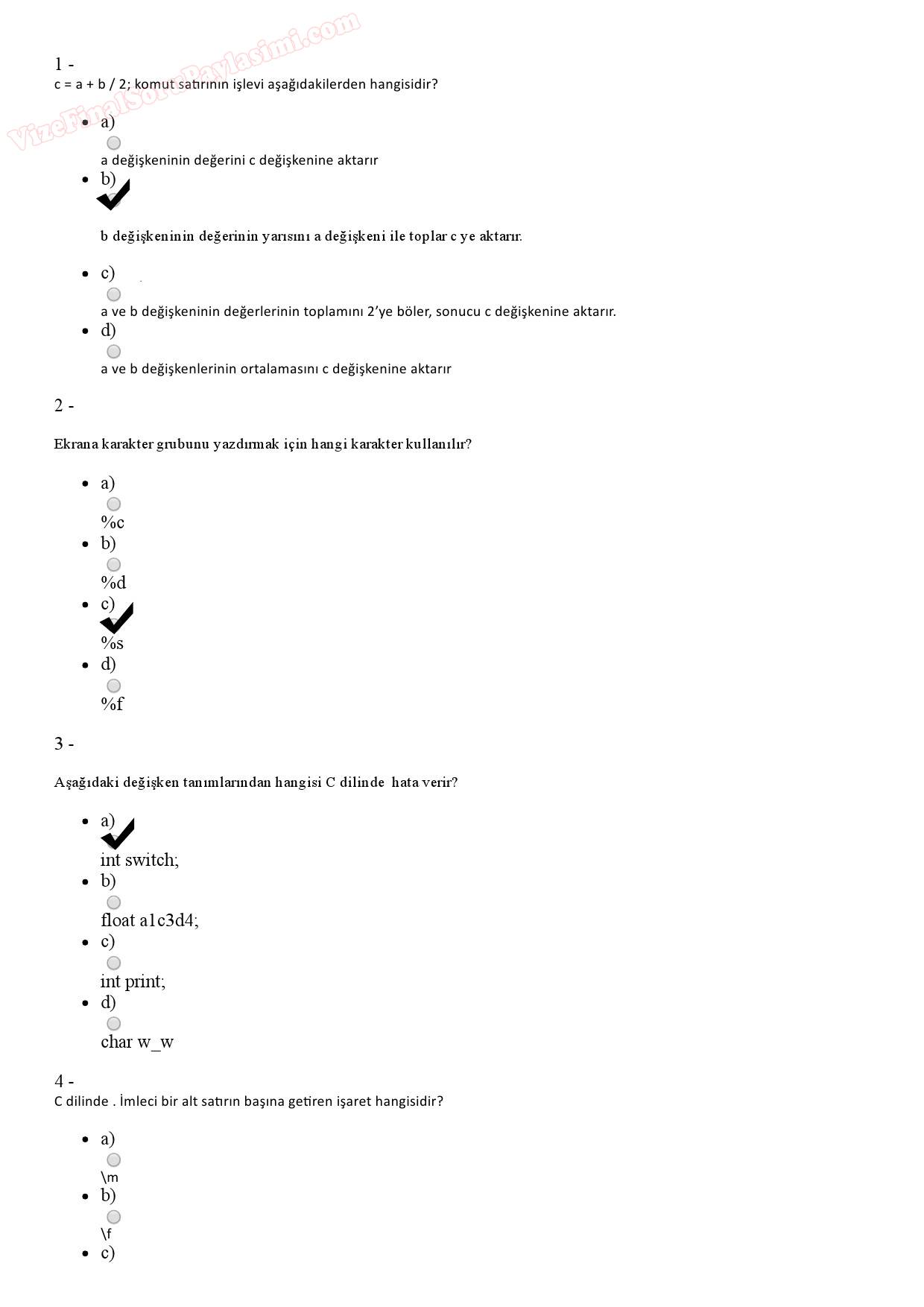 Algoritma ve Programlama Dersi Vize Soruları 9-11-2017, 14:09