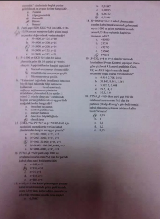 İstatistiksel Kalite Kontrol Final Soruları 22-04-2019, 23:31