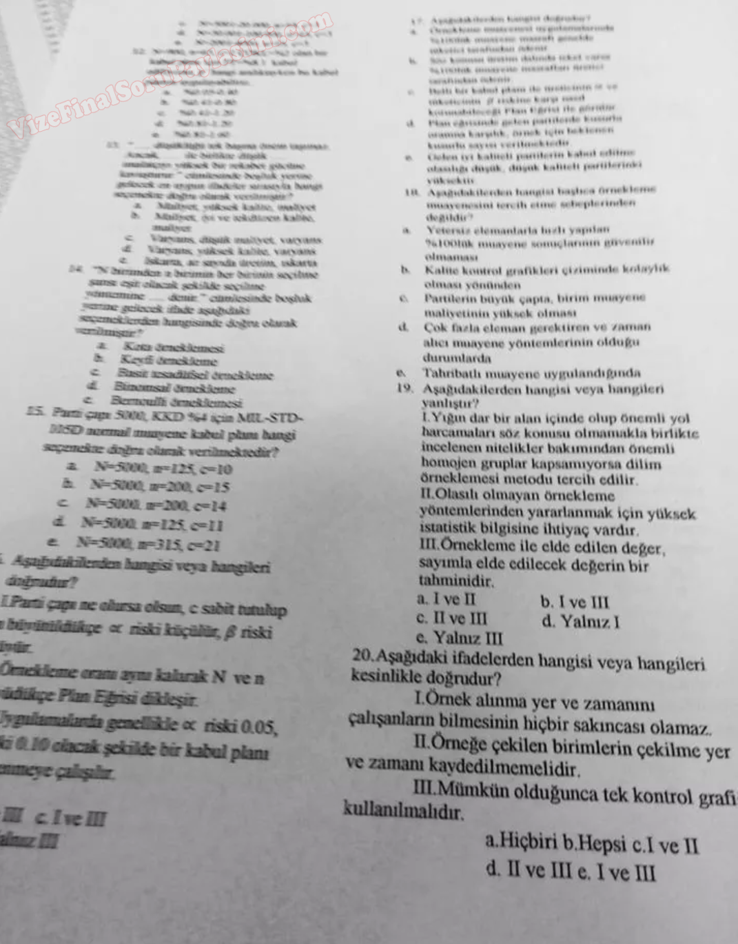 İstatistiksel Kalite Kontrol Final Soruları 22-04-2019, 23:31