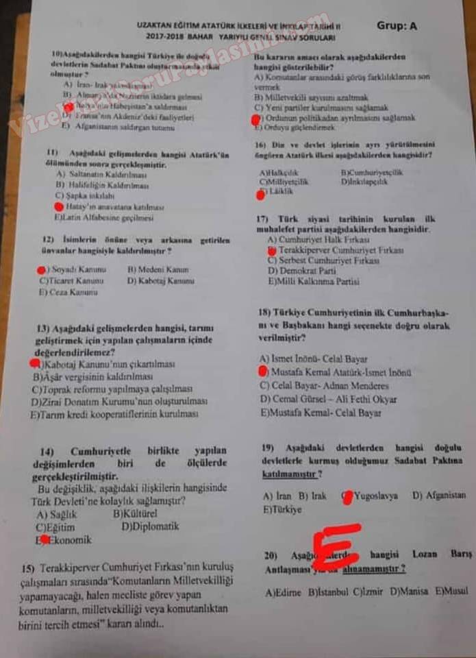 Atatürk İlke ve İnkılapları 2 Dersi Vize Soruları 3-04-2017, 00:13