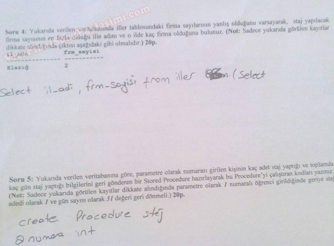 Veri Tabanı Yönetimi Final Soruları 20-01-2016, 18:45