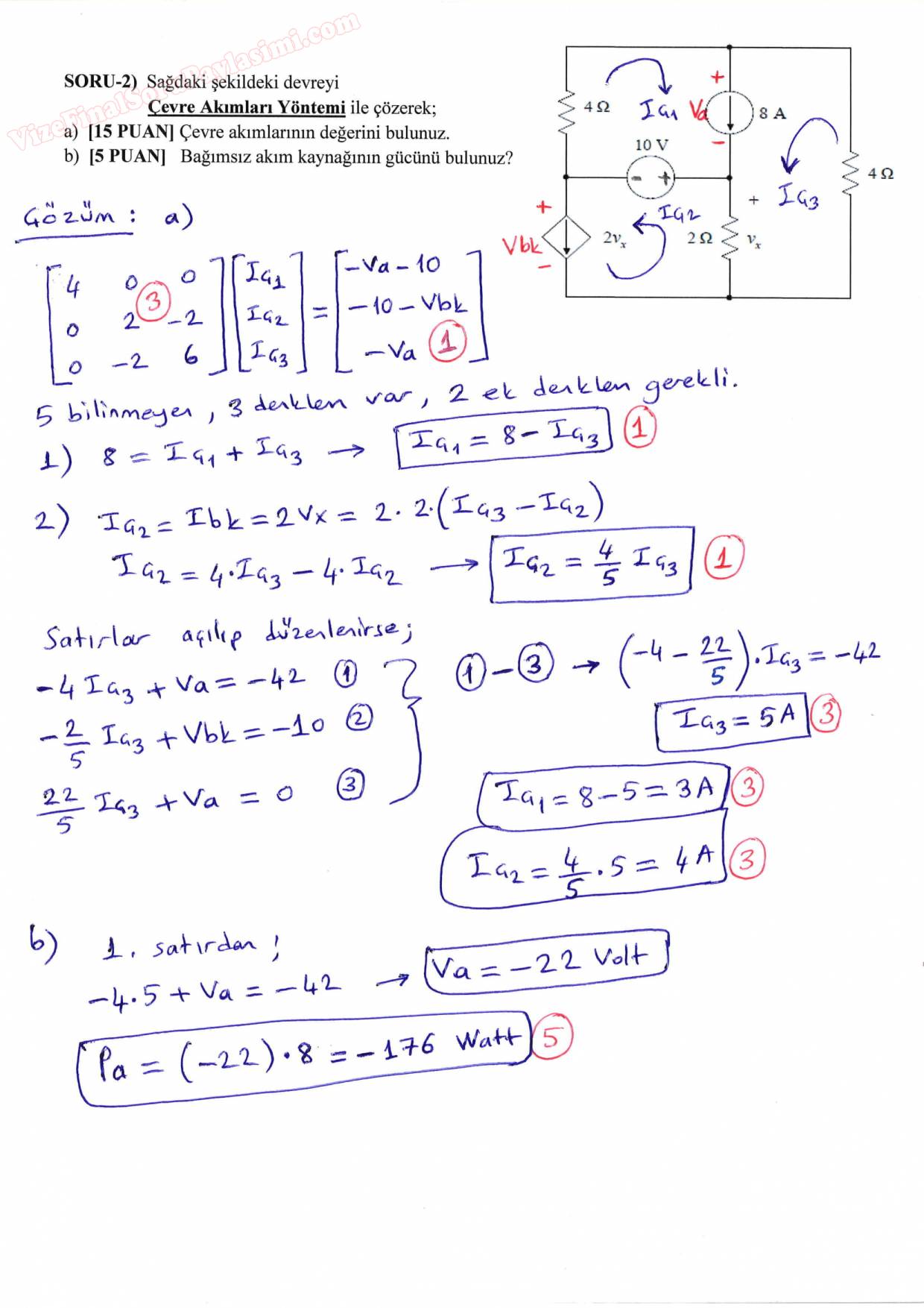 Vize ve Final Soruları / Sakarya Üniversitesi / Elektrik Devreleri-1