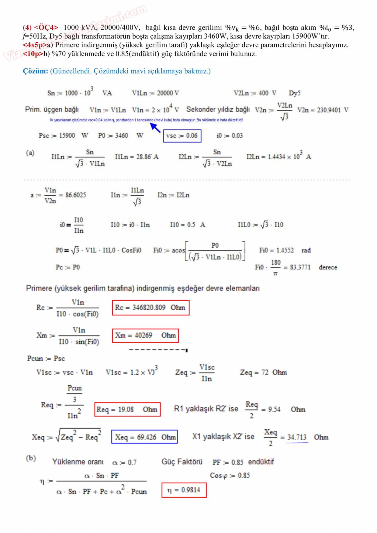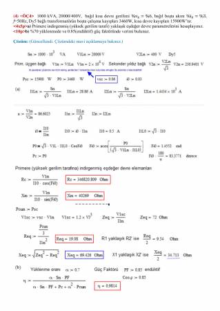 Vize ve Final Soruları / Sakarya Üniversitesi / Elektrik Makinaları-1
