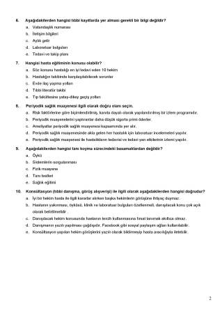 Vize ve Final Soruları / İstanbul Üniversitesi / Aile Hekimliği Dersi