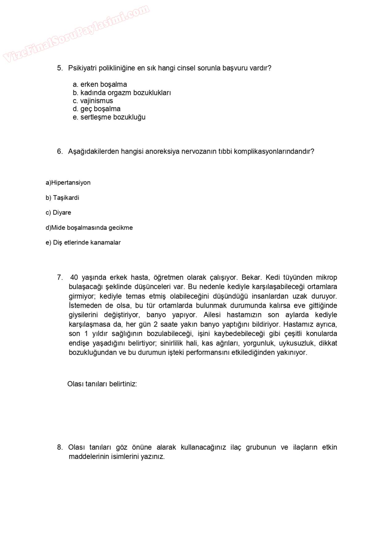 Vize ve Final Soruları / İstanbul Üniversitesi / Psikiyatri Sınav Soruları