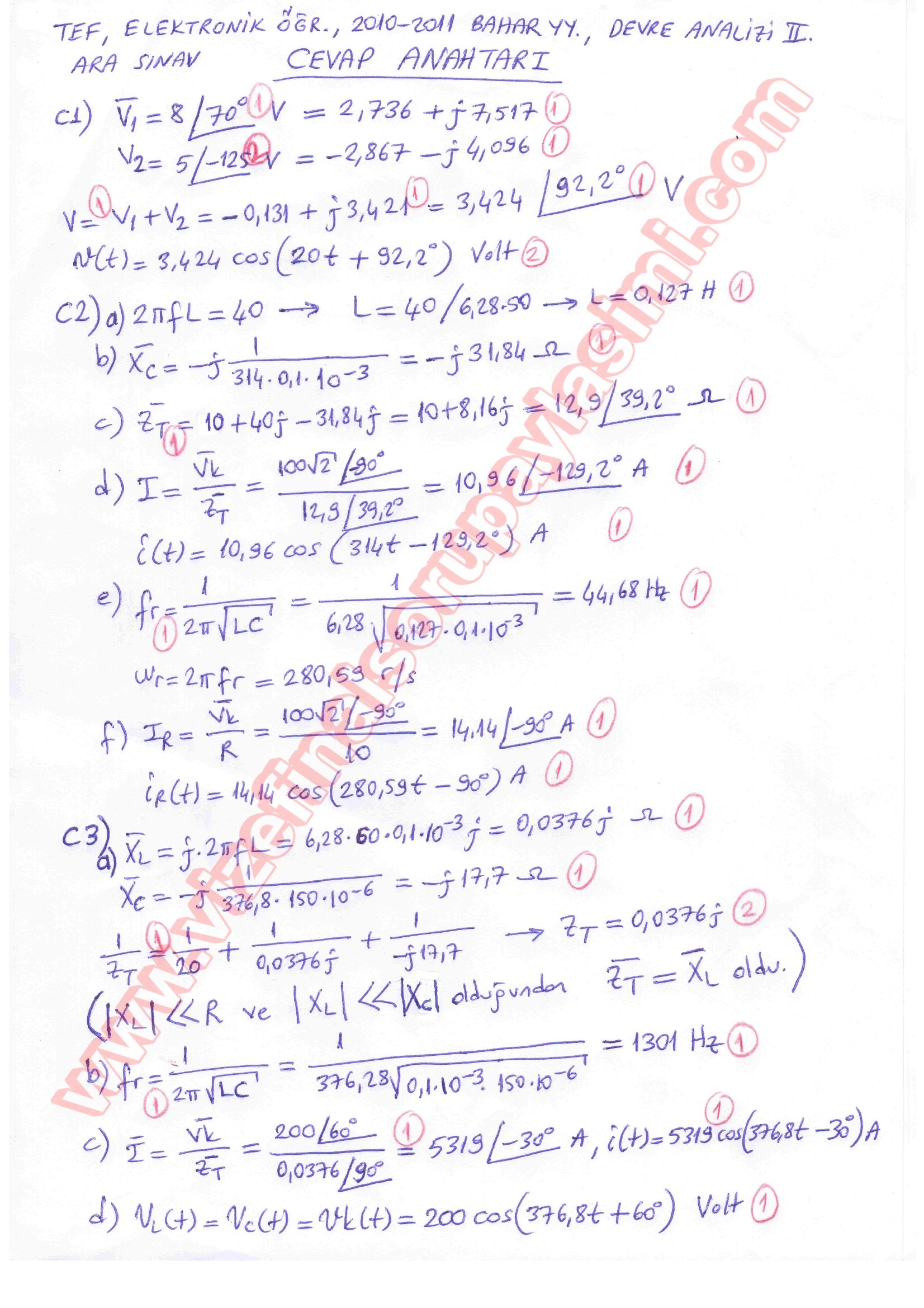 Devre Analizi-2 Vize Soruları Ve Cevapları-2011