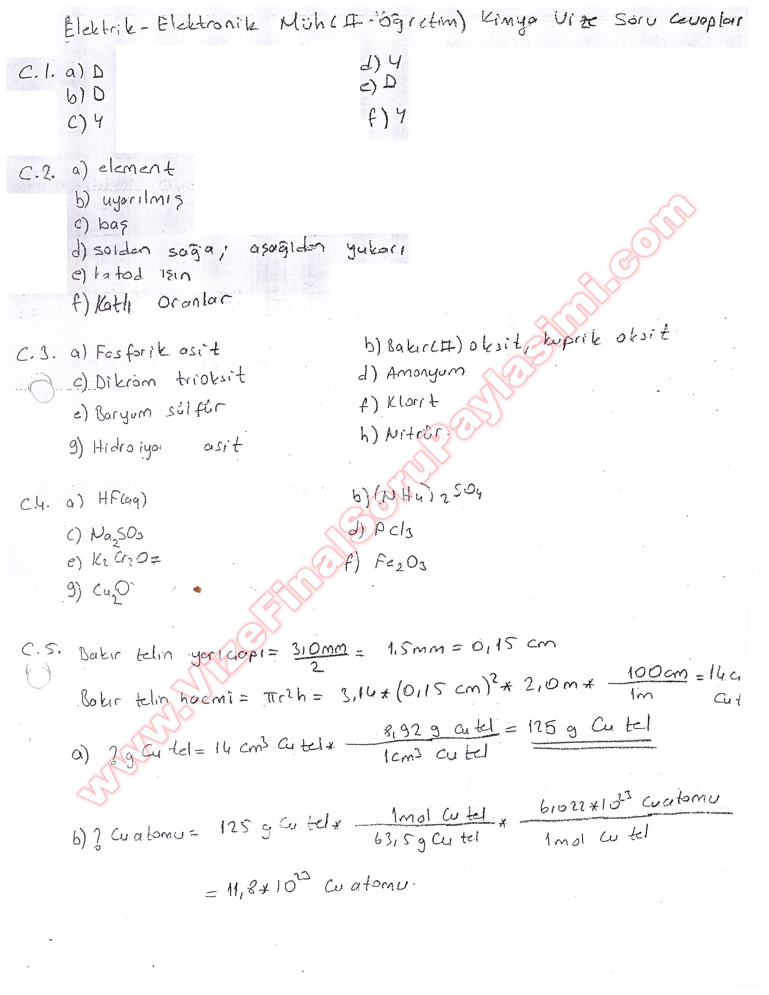 Vize ve Final Soruları / Tunceli Üniversitesi / Kimya Dersi