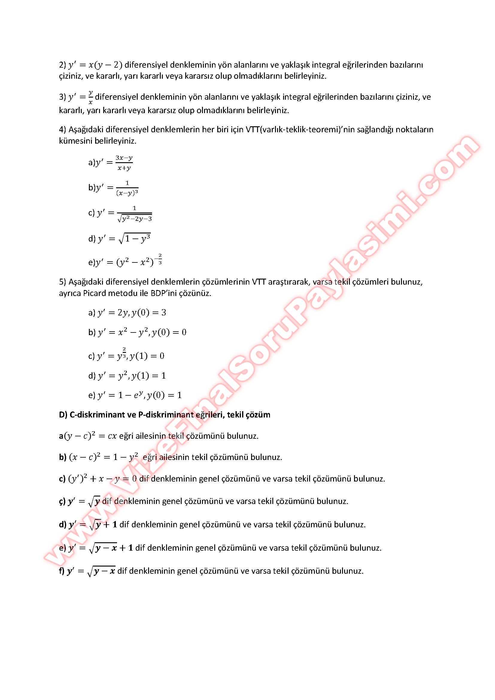 Vize ve Final Soruları / Gümüşhane Üniversitesi / Matematik -3