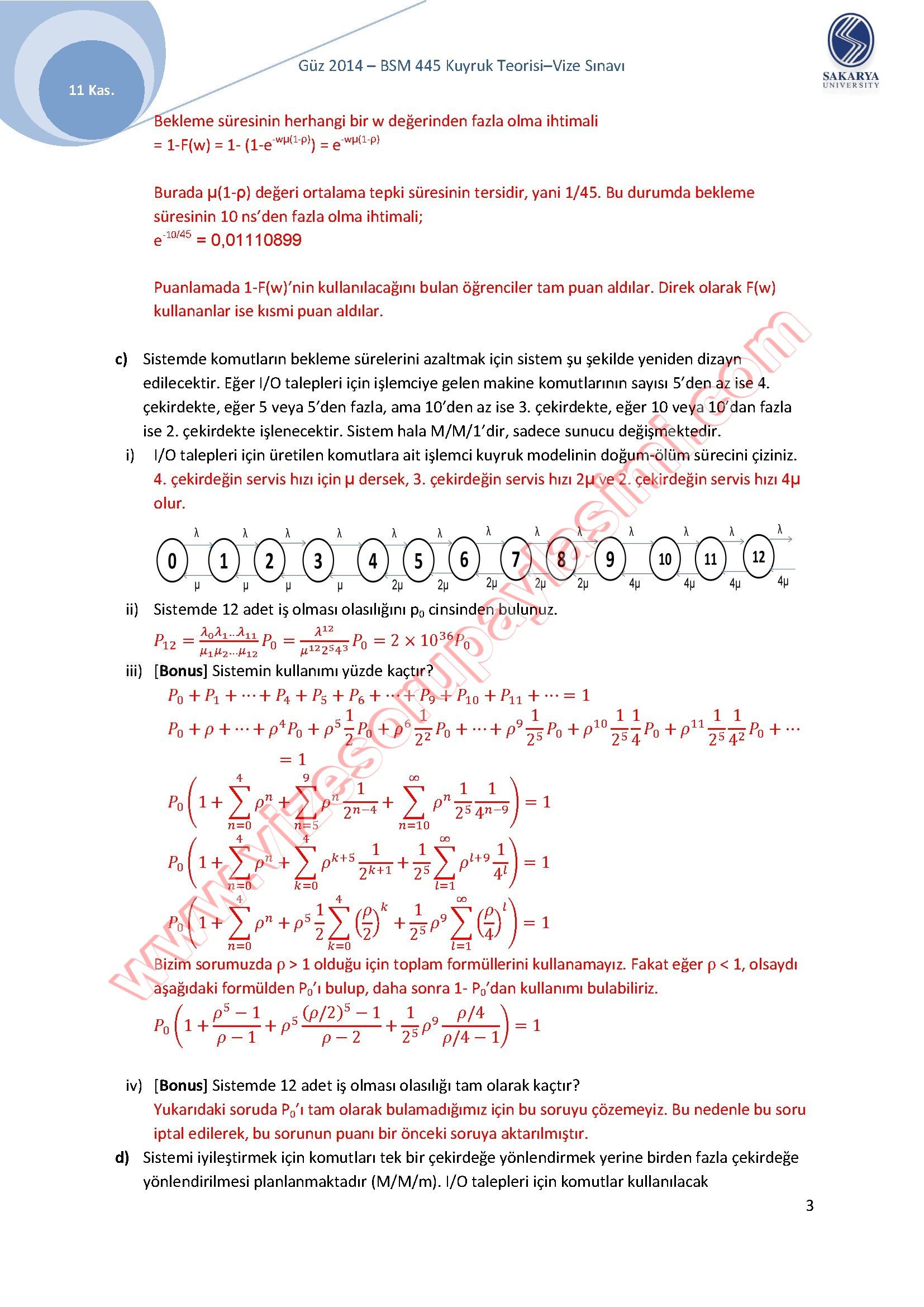 Vize ve Final Soruları / Sakarya Üniversitesi / Kuyruk Teorisi