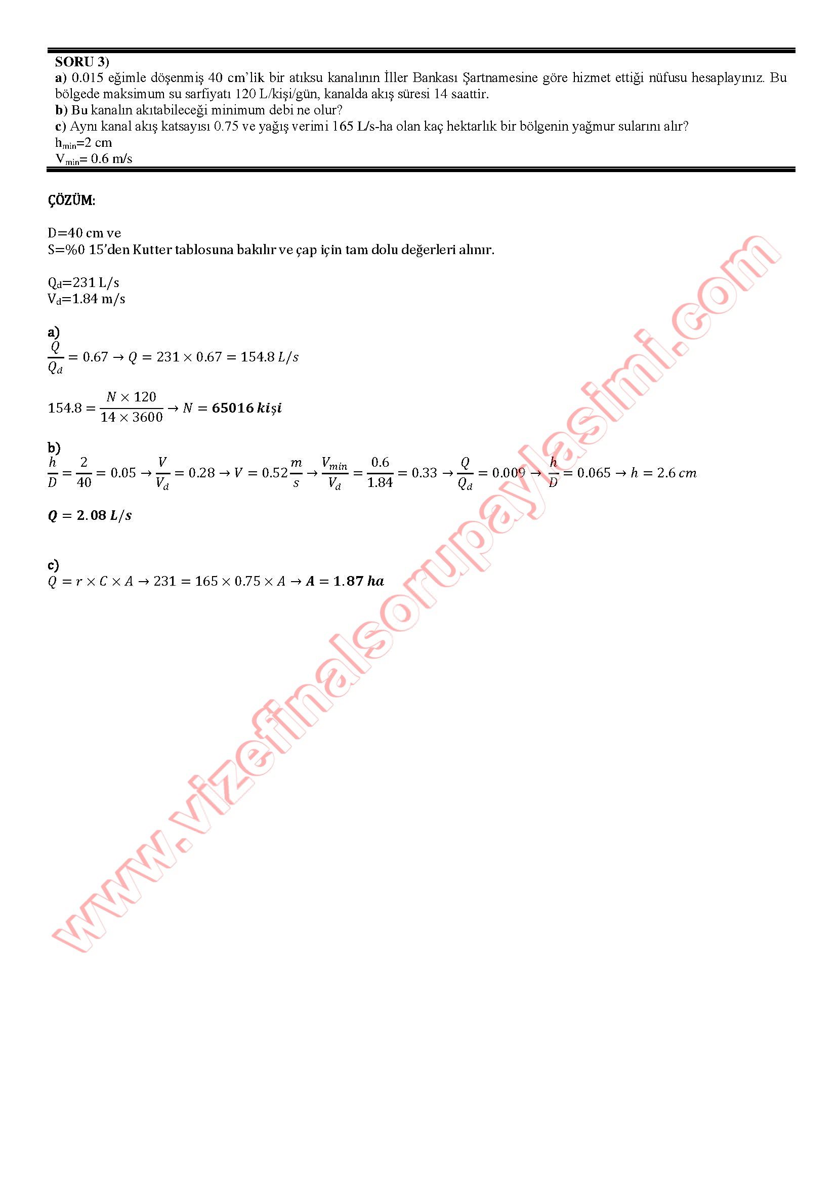 Vize ve Final Soruları / Selçuk Üniversitesi / Atık Su Uzaklaştırma Ve Sistem Tasarımı