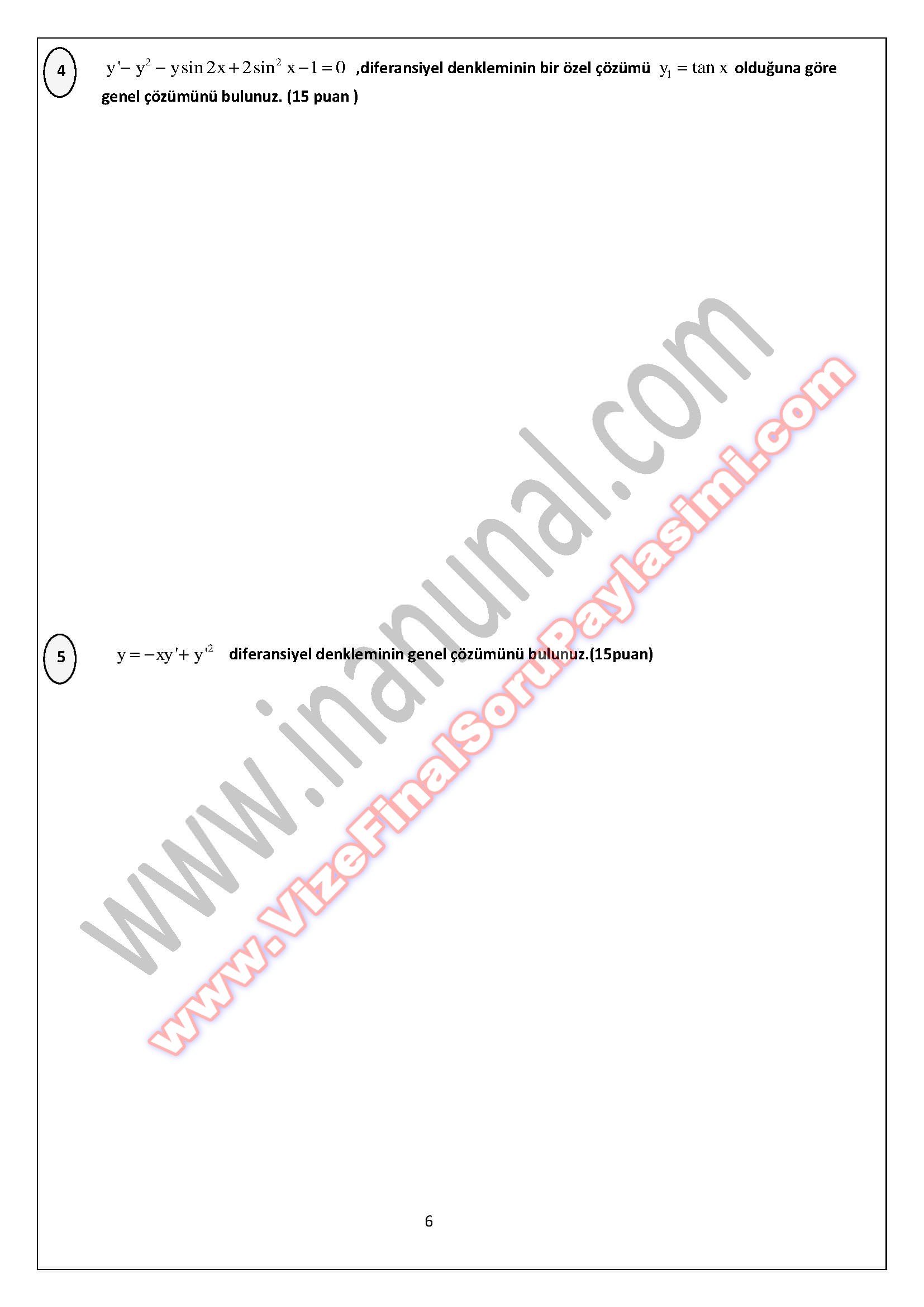 Tunceli Üniversitesi Mühendislik Matematiği Diferansiyel Denklemler -Vize Soruları 21-07-2014, 02:08