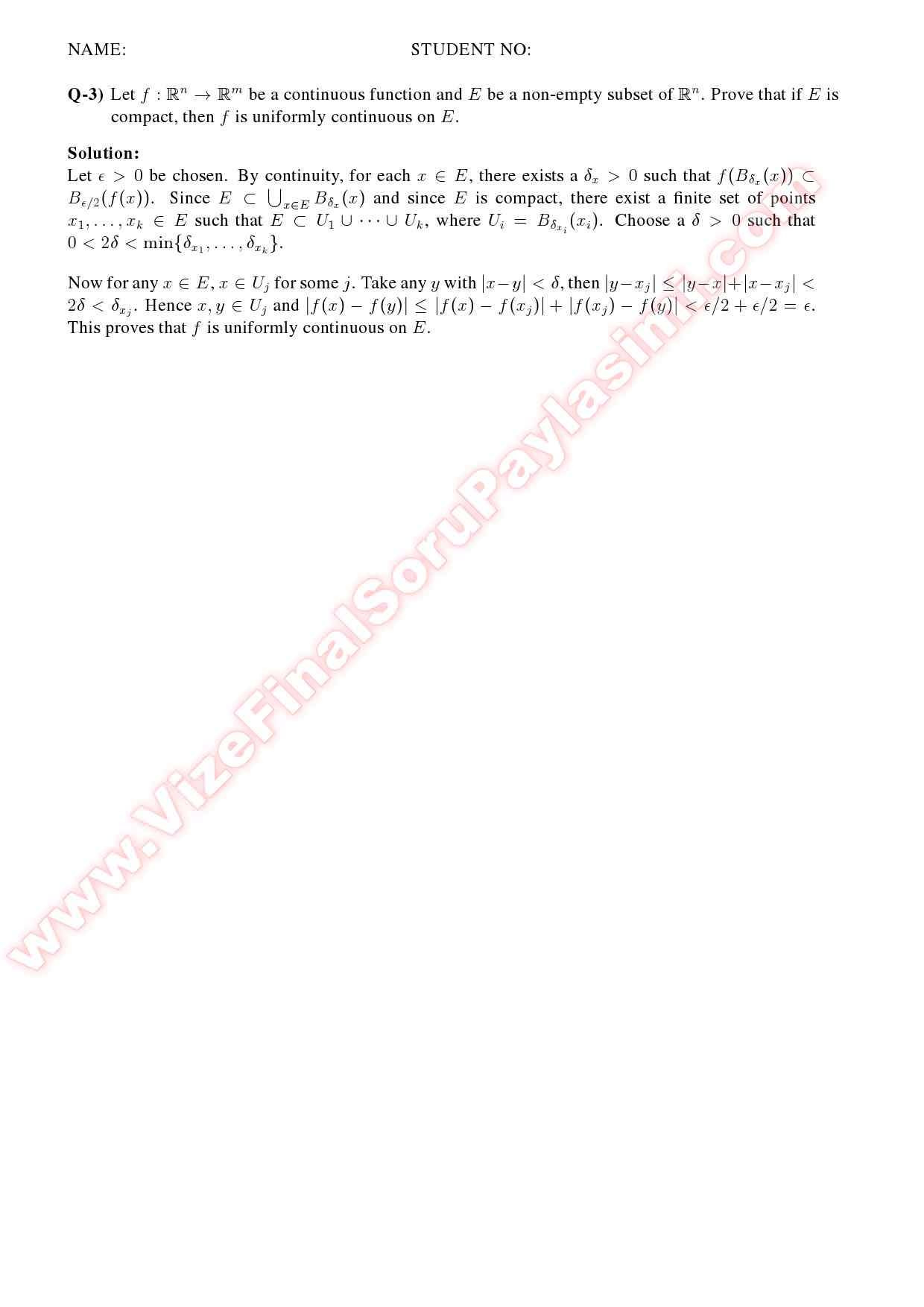 Vize ve Final Soruları / Bilkent Üniversitesi / Advanced Calculus Lesson