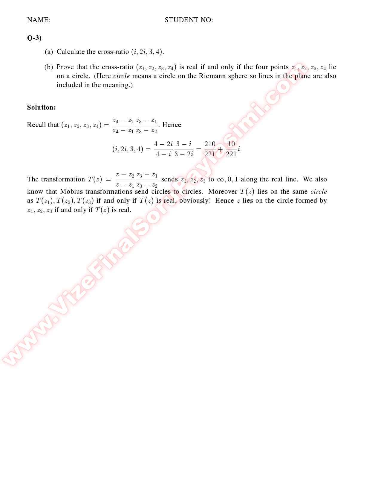 Vize ve Final Soruları / Bilkent Üniversitesi / Complex Analysis -2