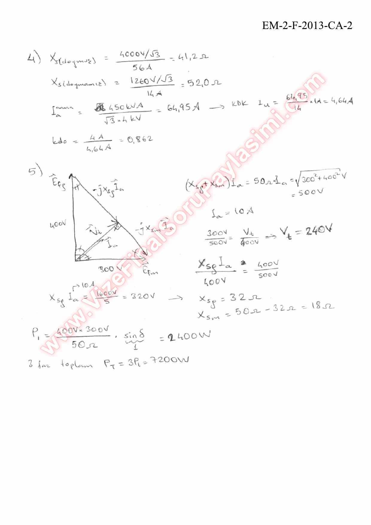 Elektrik Makinaları -2 Bütünleme Soruları Ve Çözümleri -2013 29-08-2015, 23:26