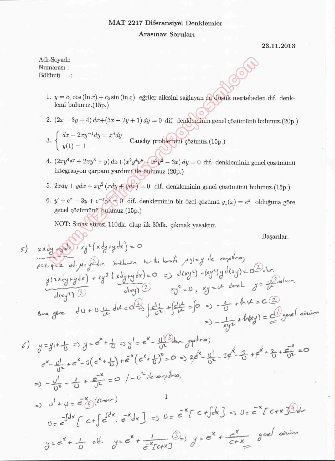 Diferansiyel Denklemler Vize Soruları Ve Cevapları-2011 12-12-2014, 14:57