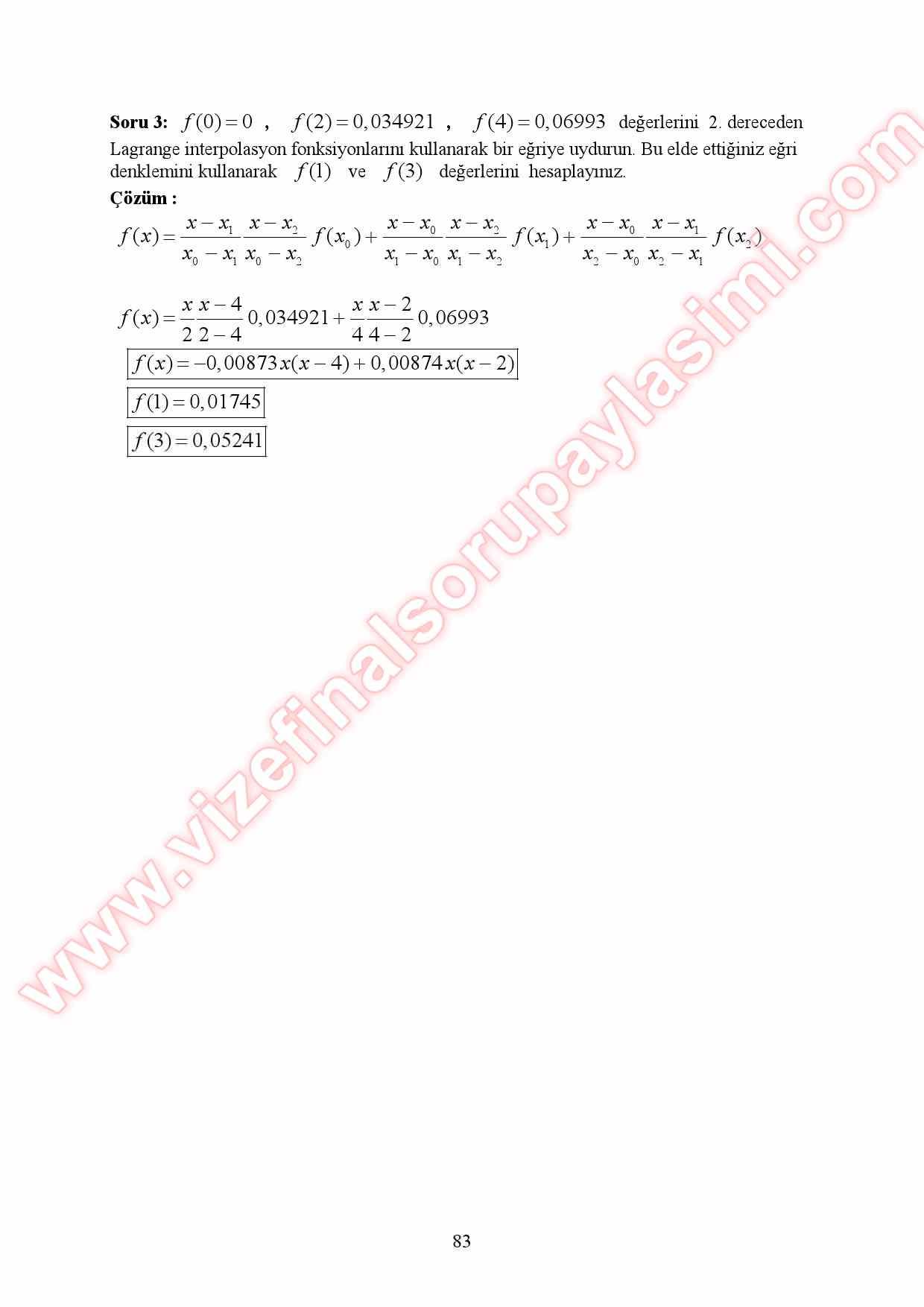 Vize ve Final Soruları / Yıldız Teknik Üniversitesi / Nümerik Analiz Dersi