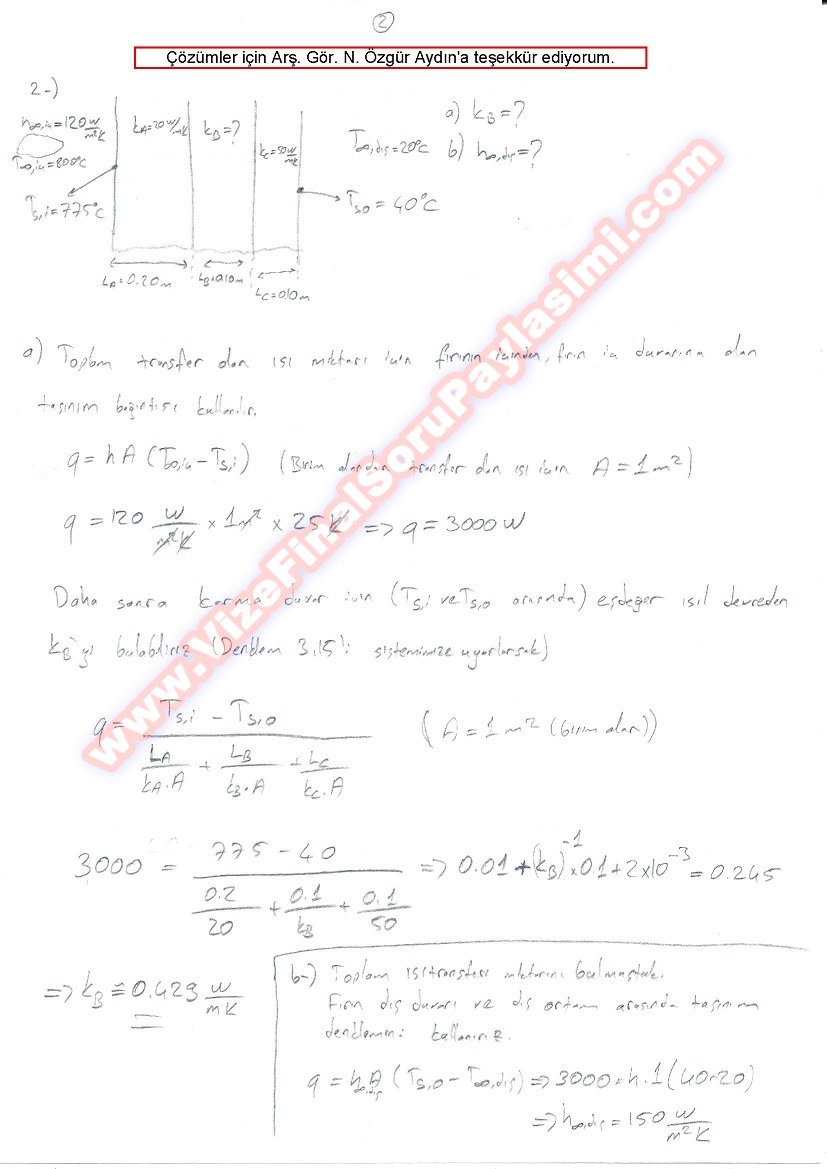 Vize ve Final Soruları / Bülent Ecevit Üniversitesi / Isı Transferi Dersi