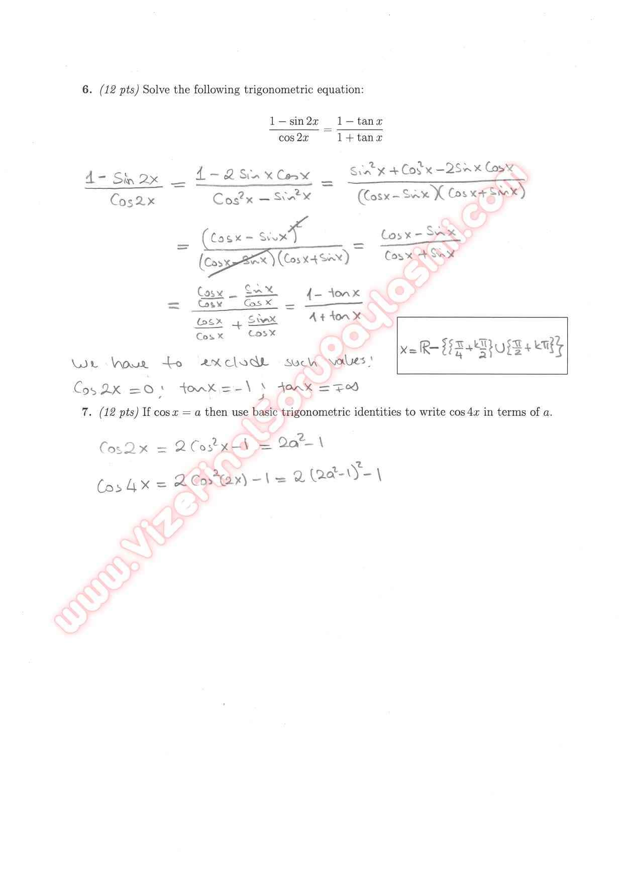 Precalculus Midterm Exam Questions And Solutions 2013 9-11-2015, 23:20