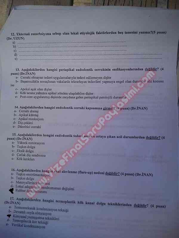 Endodonti Final soruları 2014 11-11-2015, 17:29