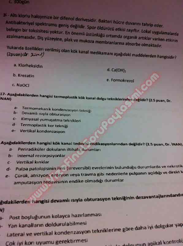 Endodontiye Giriş Vize Soruları Ve Cevapları 2012 11-11-2015, 17:46