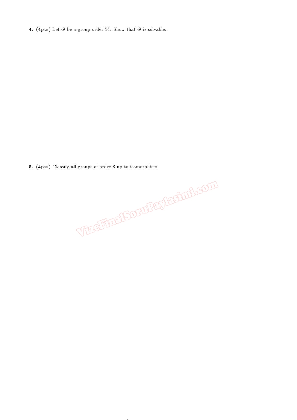 Algebra 1 Second Midterm Exam Questions ODTU