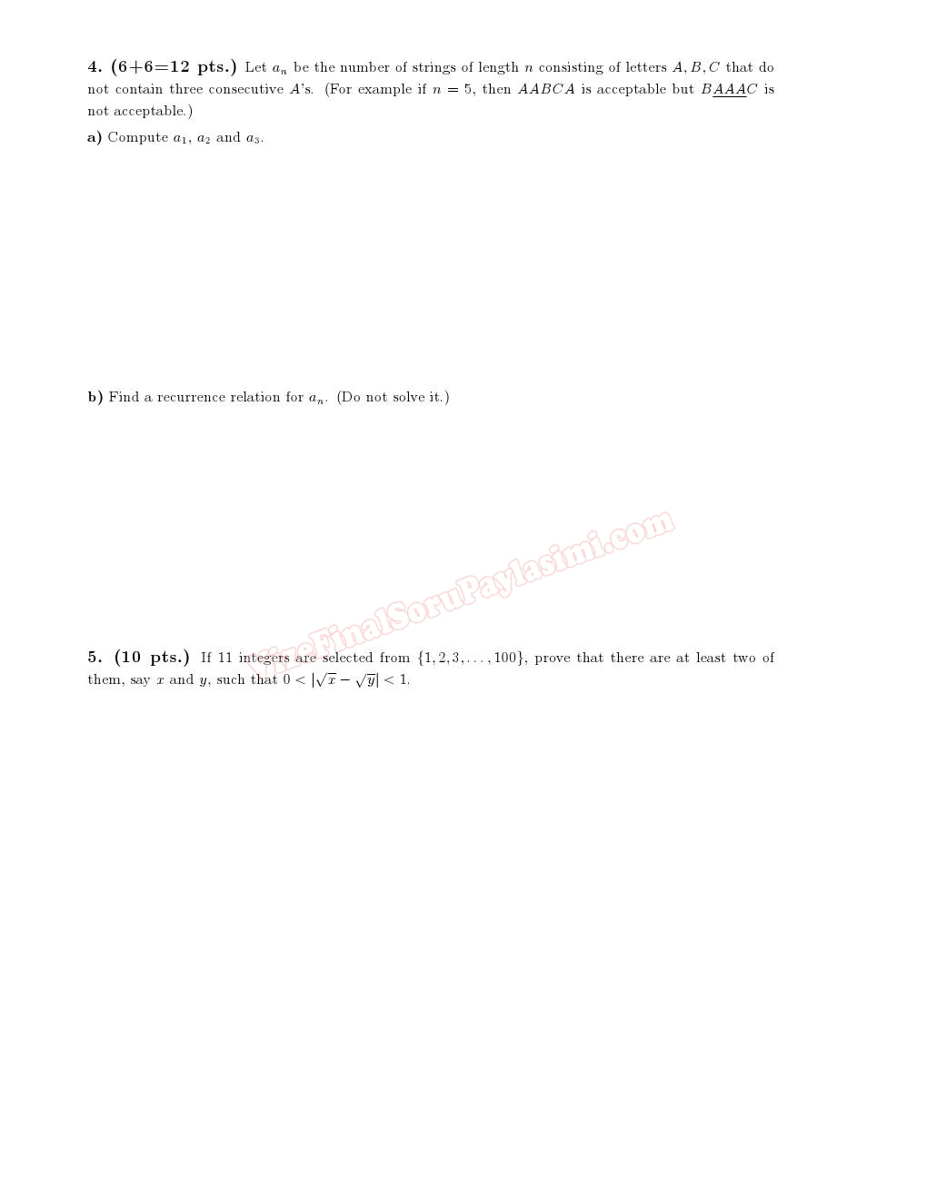 Discrete Mathematics Second Midterm Exam Questions 2011 20-12-2015, 17:09