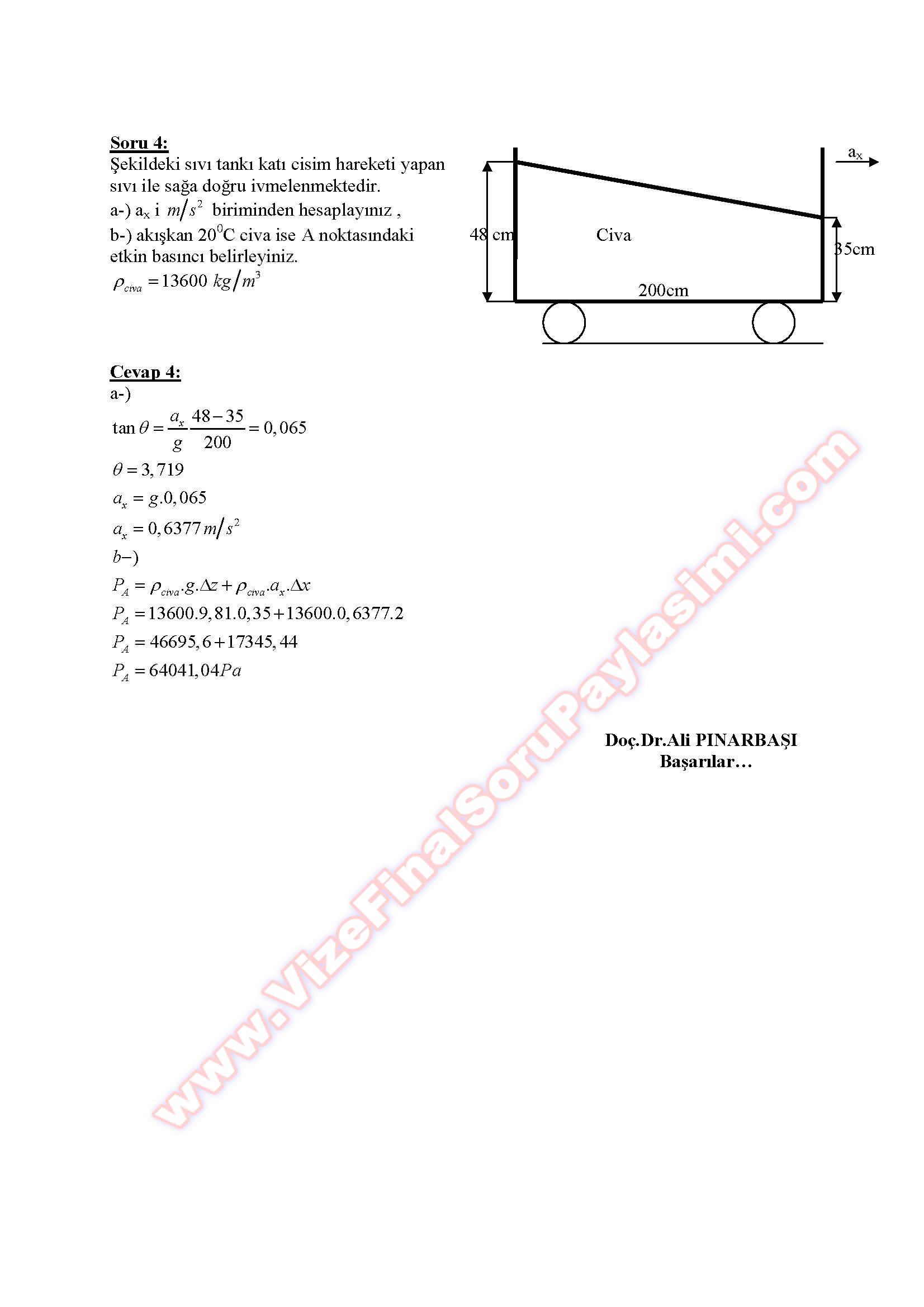 Vize ve Final Soruları / Cumhuriyet Üniversitesi / Akışkanlar Mekaniği