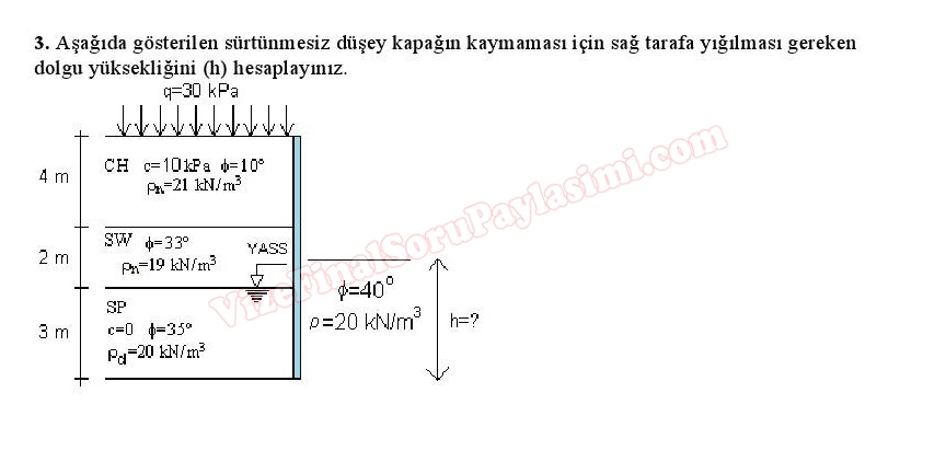 Vize ve Final Soruları / Sakarya Üniversitesi / Zemin Mekaniği Dersi