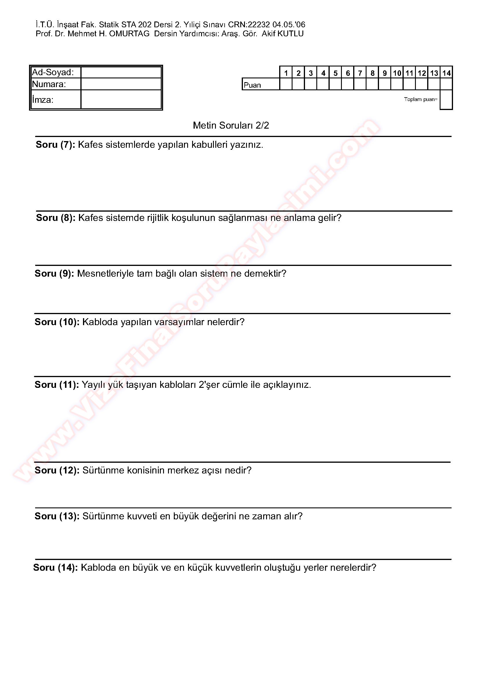 Vize ve Final Soruları / İstanbul Teknik Üniversitesi / Statik