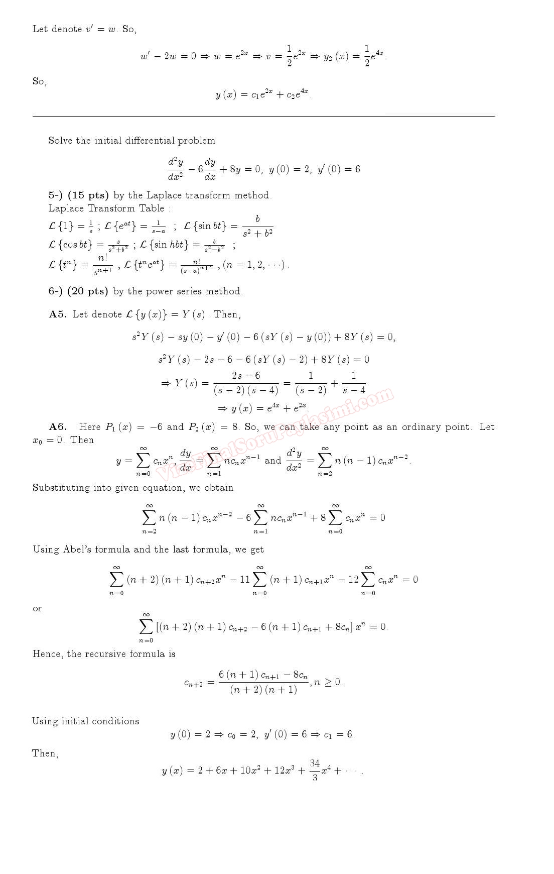 Vize ve Final Soruları / Fatih Üniversitesi / Diferansiyel Denklemler Dersi