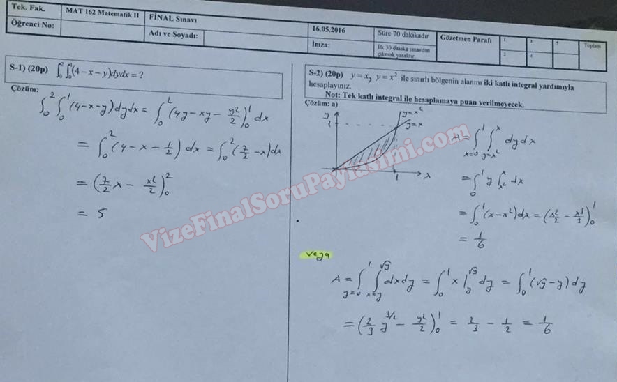 Matematik -2 Vize Soruları ve Çözümleri - Müh. Fakültesi 8-04-2016, 14:39