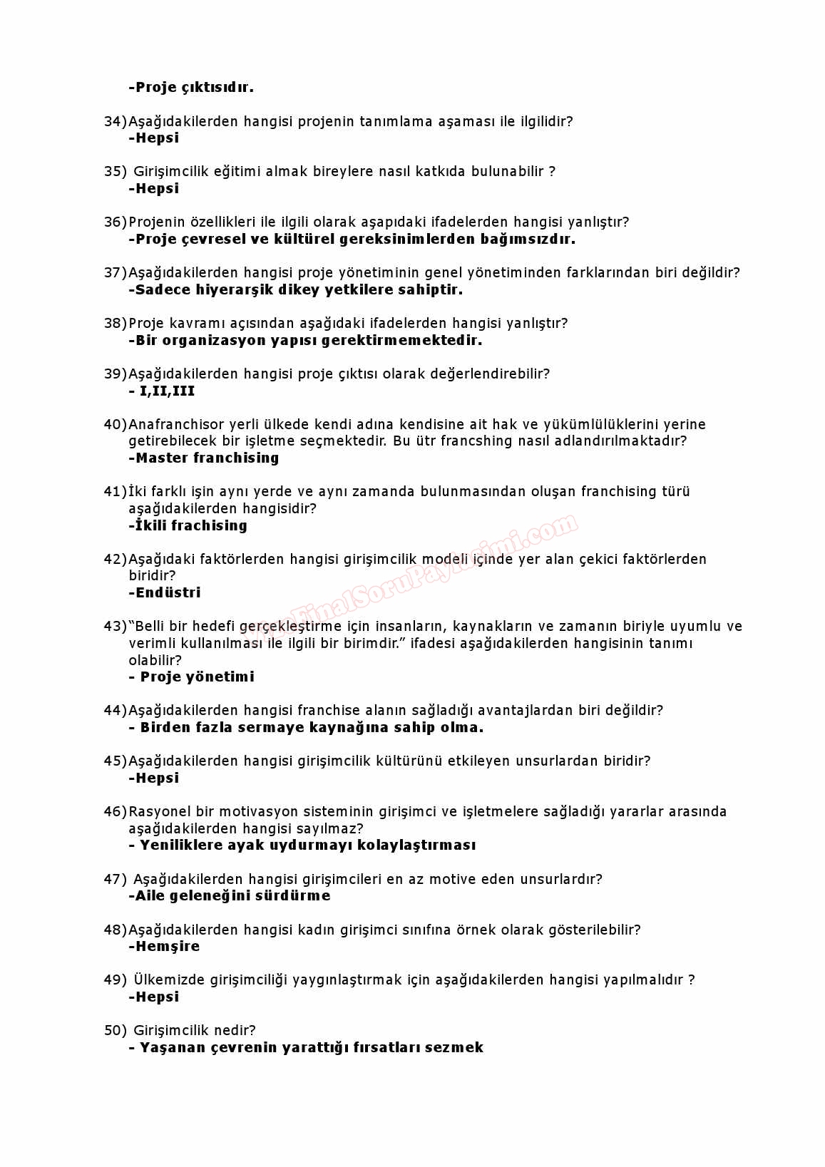 Girişimcilik ve Proje Yönetimi Çalışma Soruları