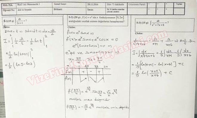 Matematik -1 Final Soruları ve Çözümleri 26-12-2016, 18:26