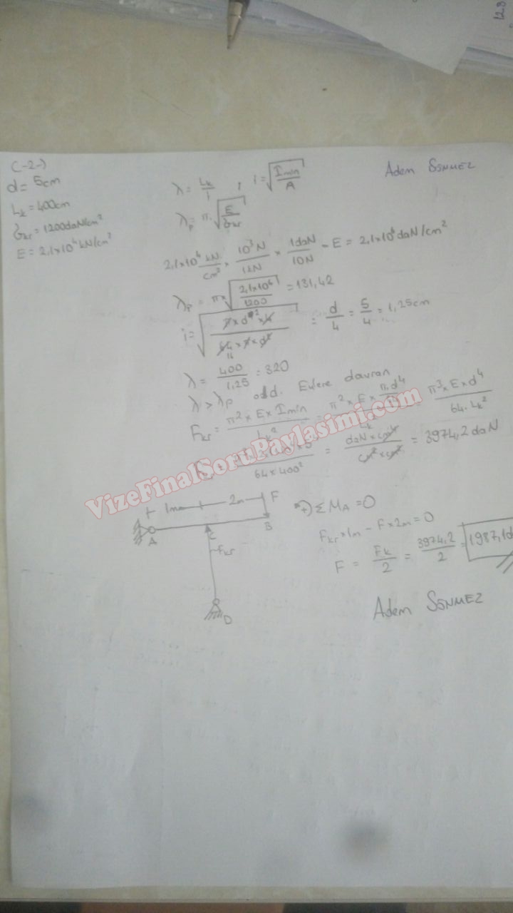 Mukavemet Dersi Final Soruları ve Cevapları 19-12-2016, 23:03