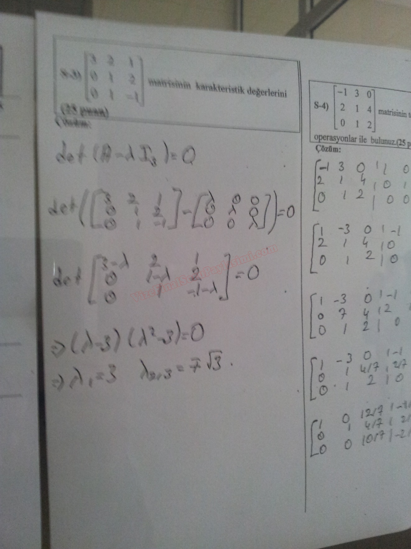 Vize ve Final Soruları / Fırat Üniversitesi / Lineer Cebir Dersi