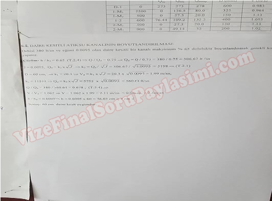 Vize ve Final Soruları / Karadeniz Teknik Üniversitesi / Su Kaynakları -2
