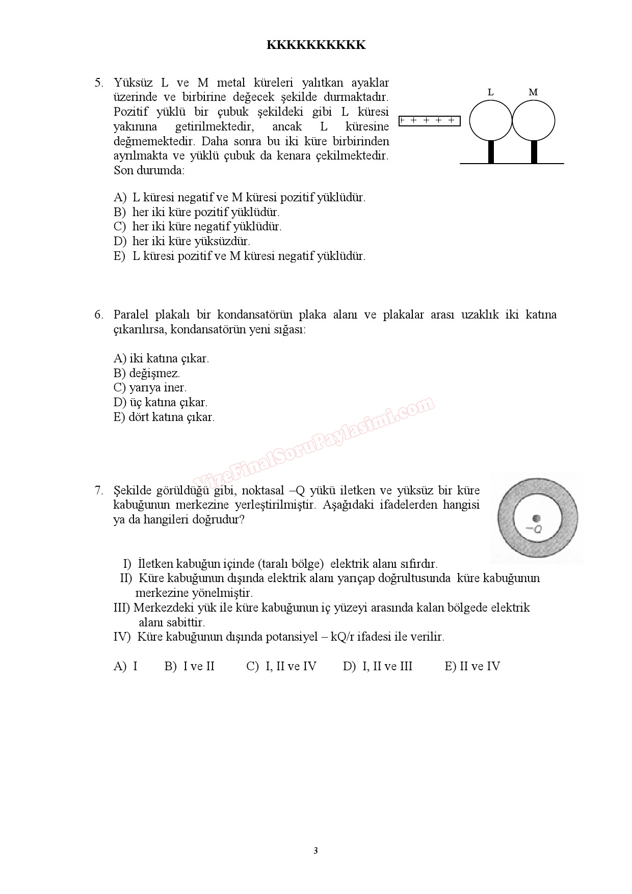Vize ve Final Soruları / Düzce Üniversitesi / Fizik -2